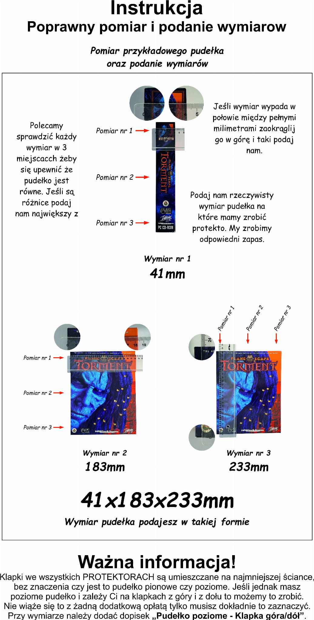 - Przy składaniu zamówienia, w okienku "wiadomość do sprzedającego" wpisz dokładne wymiary pudełka/ek