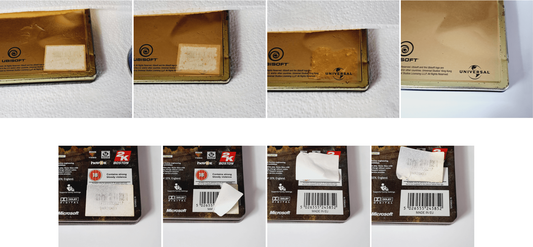 W przypadku steelbooków jest taki problem, że nadruk jest bezpośrednio na metalowym pudełku i nie jest niczym osłonięty. Nie możemy więc używać rozpuszczalników bo usuwając klej możemy również uszkodzić nadruk. Nie możemy zbyt mocno szorować, bo ponownie uszkodzimy nadruk. Wszelkiego rodzaju drapanie/skrobanie naklejki też odpada. Poniżej opis jak ja sobie poradziłem z taką wlepką i efekty.